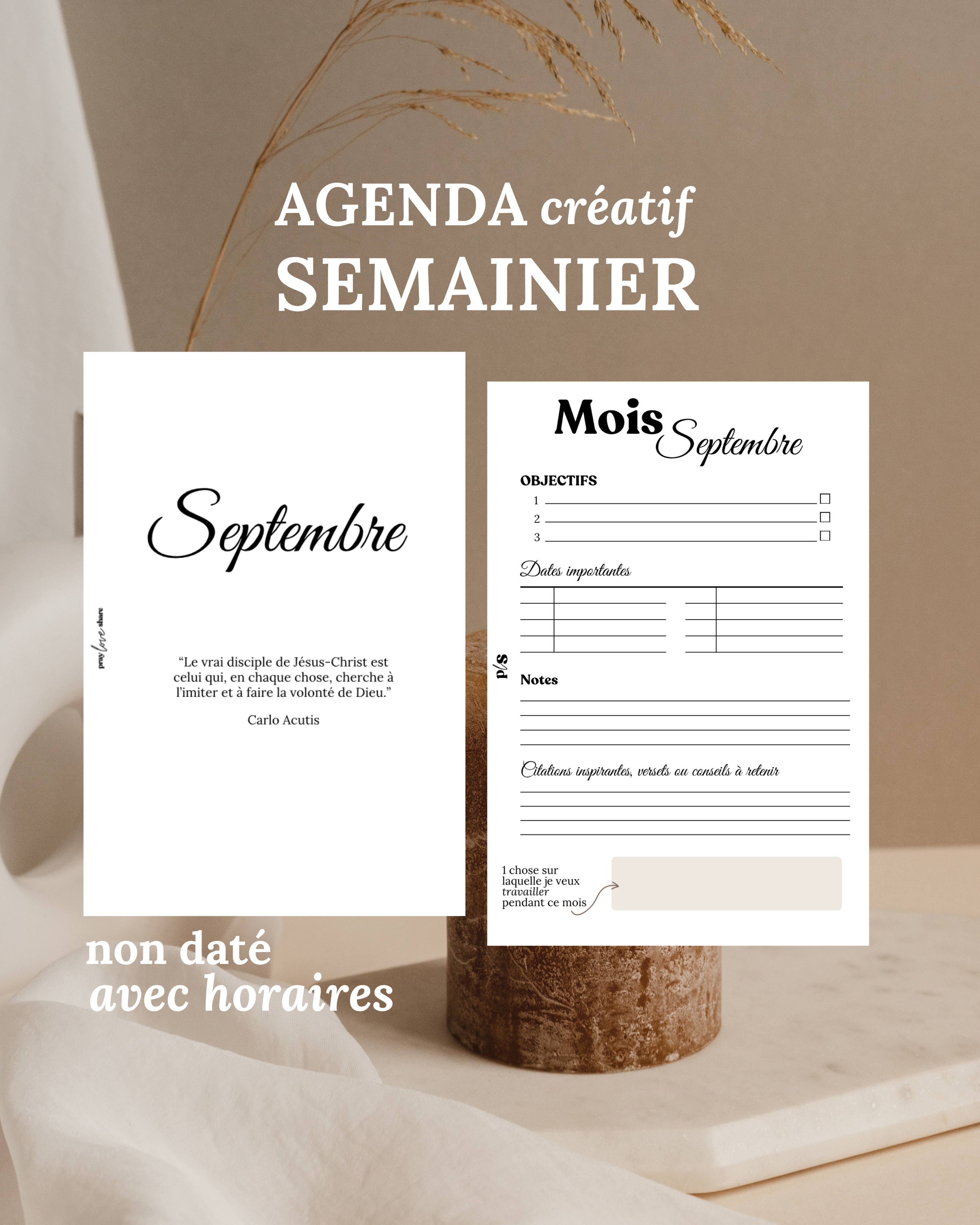 Notre planner format original, est pensé pour t'accompagner chaque jour dans ta vie spirituelle.